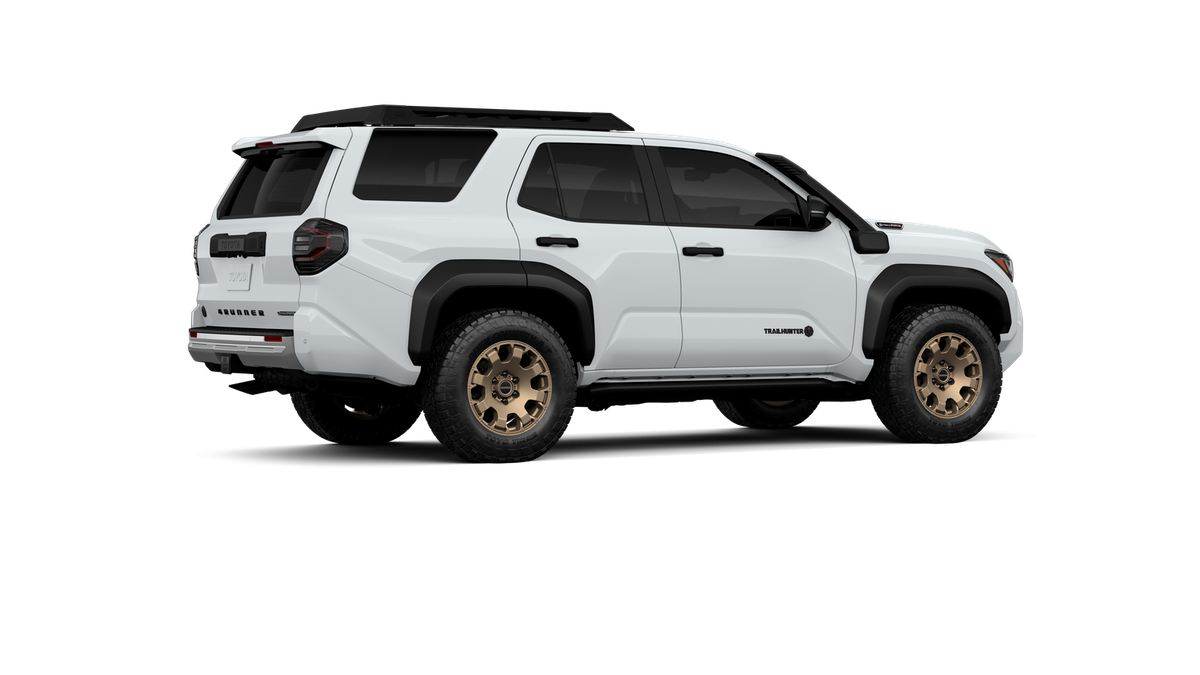 - Black "TOYOTA" heritage grille, door handles and overfenders; color-keyed mirror caps and rear spoiler; black "TRAILHUNTER" and "4RUNNER" badges