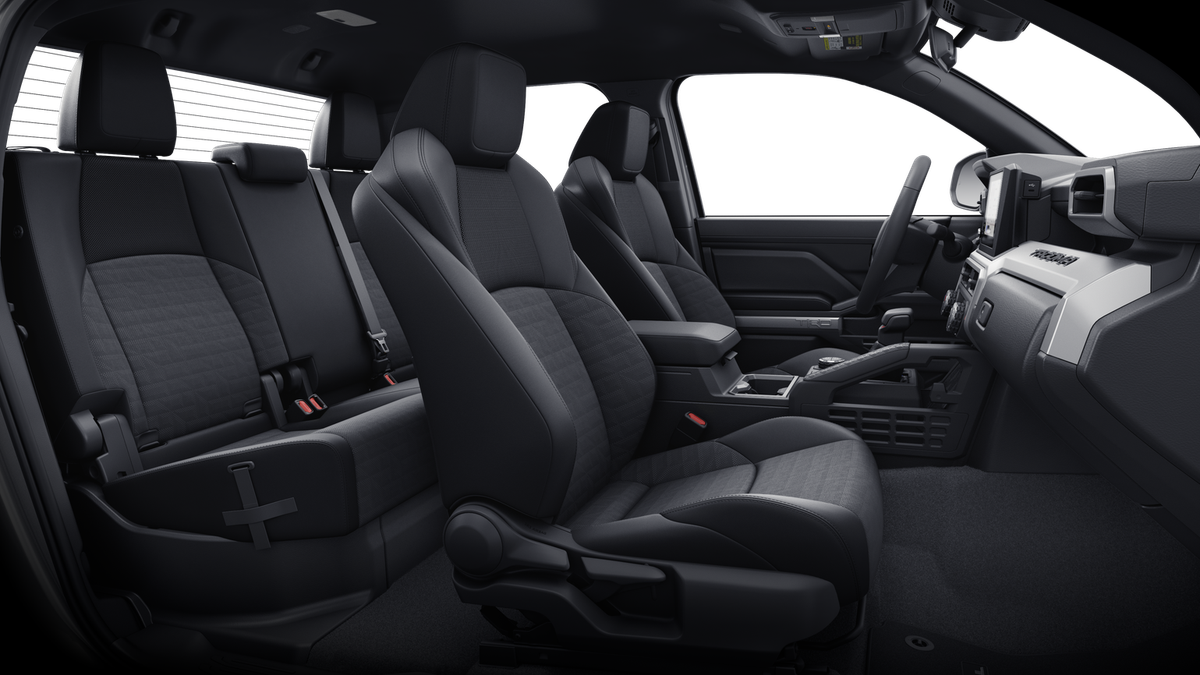 TRD Sport Premium Package (2WD) — includes SofTex®-trimmed seats with heated and ventilated 8-way power-adjustable front seats, leather-trimmed heated steering wheel, 14-in. Toyota Audio Multimedia display, Panoramic View Monitor (PVM), 39 JBL® 30 Premium Audio with JBL® FLEX 31 portable speaker, moonroof, Qi-compatible wireless charging, 46 dual zone automatic climate control, Front and Rear Parking Assist with Automatic Braking (PA w/AB) 38 and Pedestrian Detection, 44 digital rearview mirror, Integrated Trailer Brake Controller (ITBC), 29 power open/close tailgate, 45 61 Digital Key 16 capability, 400W/120V 1 AC power inverter, and power horizontal rear window
