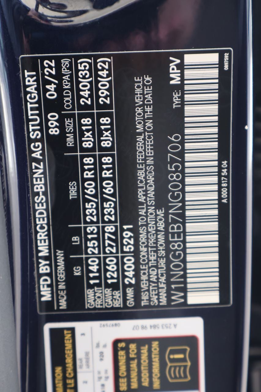 - Radio: MBUX Multimedia System -inc: MBUX intelligent vehicle assistant ("Hey Mercedes"), BluetoothĀ® technology for handsfree phone use/audio streaming, frontbass audio system, 2 USB ports and HD Radio