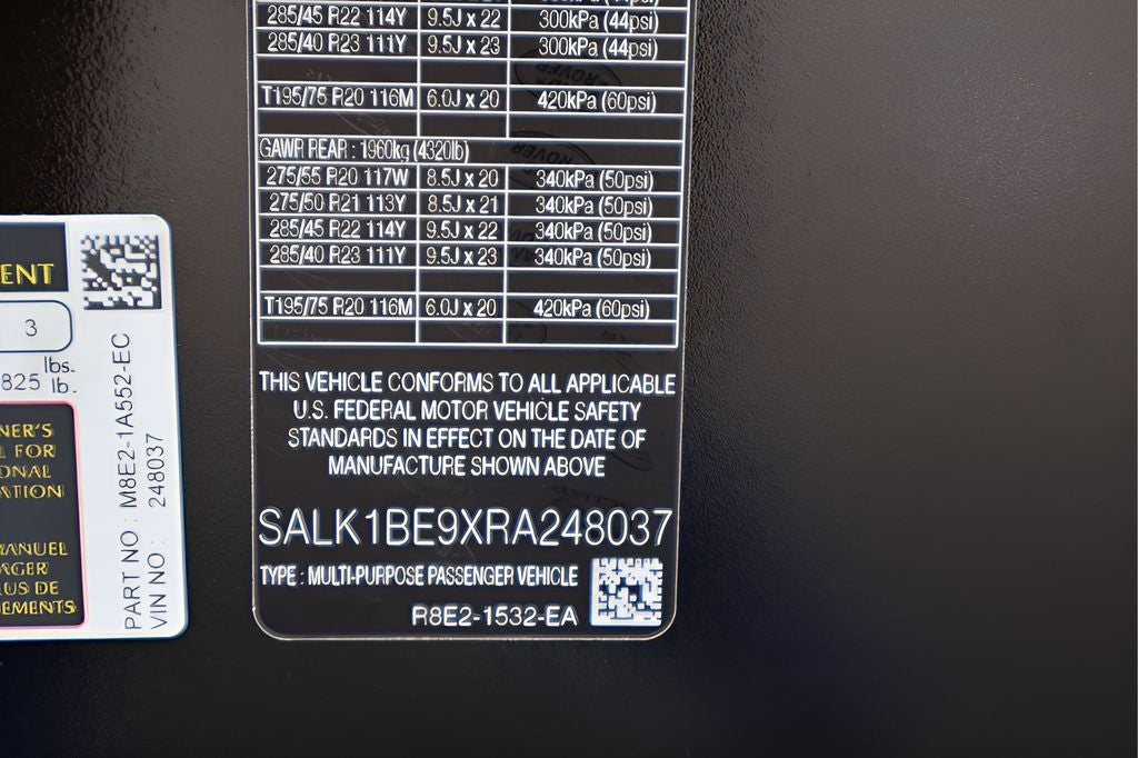 - Rear Tire Size: P275/50WR21